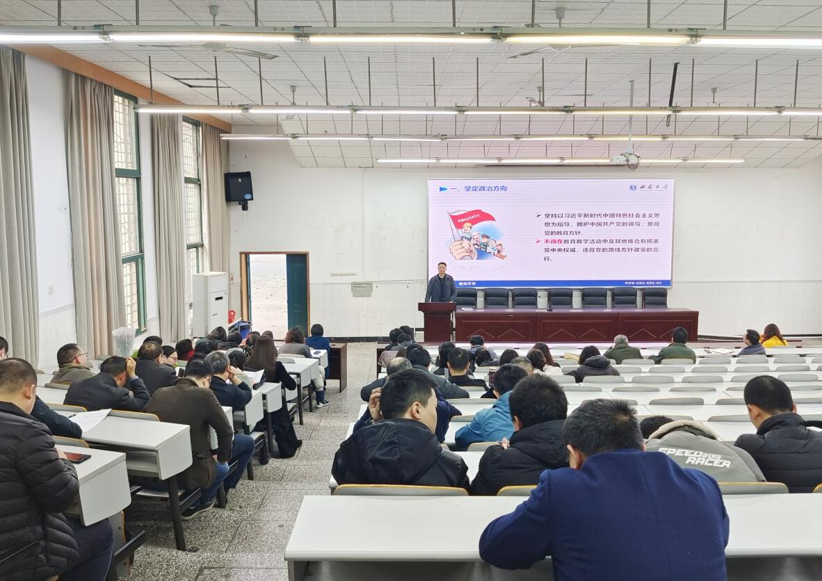 最后,李余廷书记带领全体教职工原原本本学习了《新时代高校教师职业行为十项准则》。李书记结合91成人社区 落实师德师风的长效机制,围绕《准则》出台的时代背景、重要意义、具体内容和失范行为处理意见,逐条向参会人员解读了“十项准则”的精神内涵。他指出,《准则》的出台,明确了新时代高校教师职业规范,针对主要问题、突出问题划定了基本底线,是对广大教师的警示提醒和严管厚爱,是深化师德师风建设,造就政治素质过硬、业务能力精湛、育人水平高超的高素质教师队伍的关键之举。同时,李书记还结合近期媒体报道的高校教师失范行为案例,再次强调了师德师风建设的重要性。