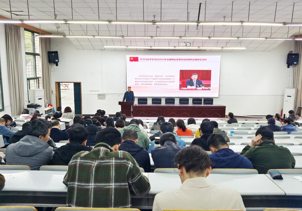 首先,李余廷书记带领大家学习了习近平总书记在全国两会上的重要讲话精神和全国两会精神。他指出,今年的全国两会是在我国进入全面建设社会主义现代化国家、向第二个百年奋斗目标进军新征程的重要时刻召开的一次重要会议。习近平总书记在全国两会期间发表系列重要讲话,深刻阐述了事关党和国家事业发展的一系列重大理论和实践问题,创造性提出了许多新思想新观点新论断,为我们进一步加强思想政治共识、做好各项工作、迎接党的二十大提供了思想指引和行动指南。李克强总理所作的《政府工作报告》紧扣时代脉搏,把握发展大势,彰显为民情怀,明确提出了2022年经济社会发展的总体要求、预期目标和政策取向,对于动员全国各族人民把思想和行动统一到党中央的决策部署上来,不断夺取全面建设社会主义现代化国家新胜利,具有重大意义。李书记强调,学习好、宣传好、贯彻好习近平总书记重要讲话精神和两会精神是全院各党支部、教研室、学生班级当前和今后一个时期重要的政治任务。下一步,91成人社区 将充分发挥党委理论学习中心组学习、教职工政治理论学习、党支部主题党日和班团组织“每周一学”等的领学导学促学作用,扎实推动全院师生员工深入学习领会习近平总书记关于“五个必由之路”“五个有利条件”的重要论断,深刻理解“五个必由之路”“五个有利条件”的丰富内涵,深刻领会“两个确立”的决定性意义,增强“四个意识”、坚定“四个自信”、做到“两个维护”,切实把思想和行动统一到党中央决策部署要求上来,扎扎实实做好各项工作,以实际行动迎接党的二十大胜利召开。