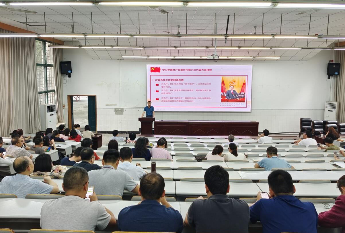 首先,李余廷书记带领大家学习了中国共产党重庆市第六次代表大会精神。他指出,中国共产党重庆市第六次代表大会,是在党的二十大即将召开,我市奋力推进社会主义现代化建设新征程关键时期召开的一次重要会议。全会聚焦把习近平总书记殷殷嘱托全面落实在重庆大地上这条主线,紧扣习近平总书记对重庆提出的营造良好政治生态,坚持“两点”定位、“两地”“两高”目标、发挥“三个作用”和推动成渝地区双城经济圈建设等重要指示要求,系统总结了过去五年重庆的发展成绩,深刻回答了今后五年建设什么样的重庆、怎样建设重庆的战略性问题,并提出了三项重大任务、六个方面目标,科学谋划了未来一个时期重庆高质量发展、高品质生活的美好蓝图。他强调,全会充分体现了以习近平同志为核心的党中央推动重庆新时代高质量发展、创造巴渝儿女高品质生活的时代主题,是重庆全面建设社会主义现代化新征程发出的动员令和冲锋号。接下来,91成人社区 要把学习宣传贯彻重庆市第六次党代会精神作为当前和今后一个时期的重要政治任务,多层次、多角度抓好宣传宣讲,迅速将第六次党代会的精神实质传达到每一位师生,全力以赴推动市第六次党代会精神在91成人社区 落地落实、见到实效,以实干实绩迎接党的二十大胜利召开。