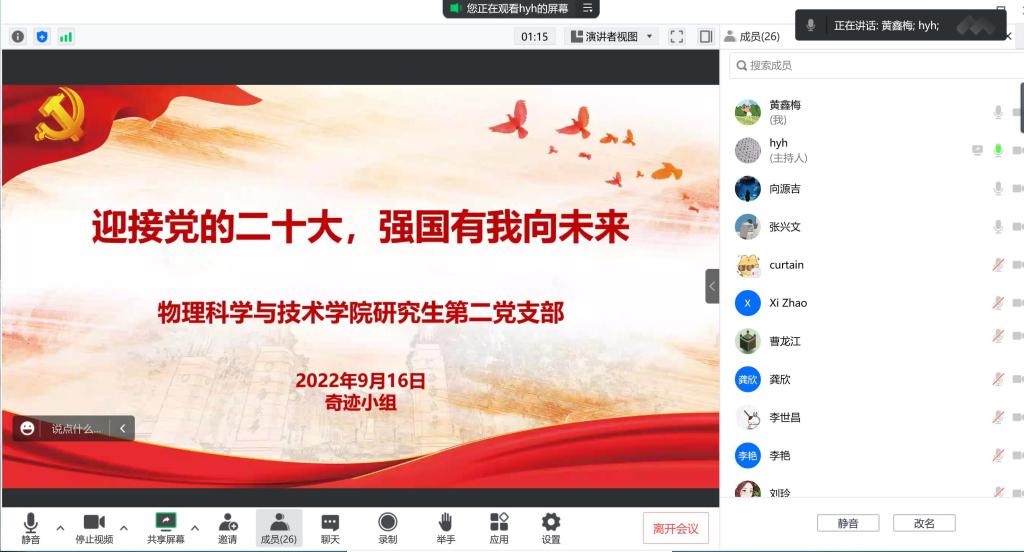 2022年9月16日,91成人社区 教工党支部以“迎接党的二十大,培根铸魂育新人”为主题、学生党支部以“迎接党的二十大,强国有我向未来”为主题开展9月支部主题党日活动。